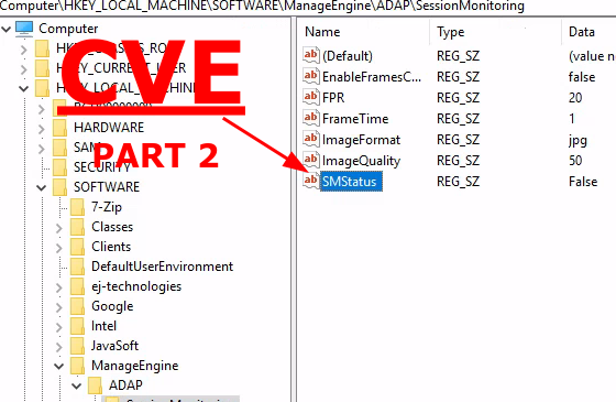 HKEY_LOCAL_MACHINE\SOFTWARE\ManageEngine\ADAP is under the attackers control.